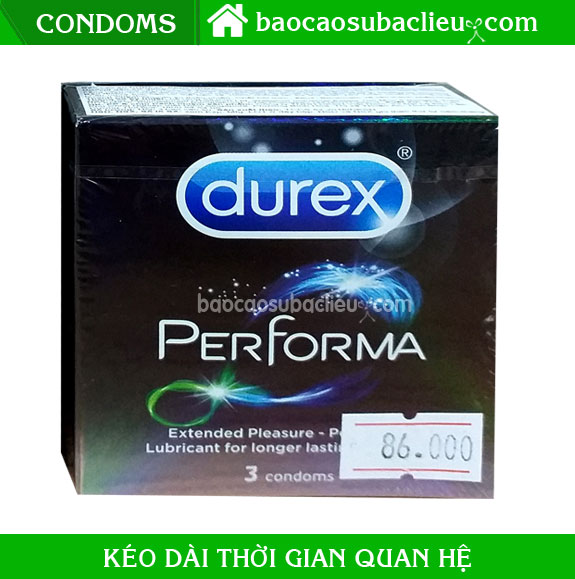 - Bao cao su Durex Performa là dòng bao cao su trơn kéo dài thời gian quan hệ của Durex.